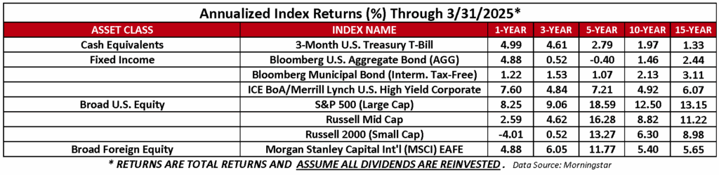 We remain constructive on the high-quality positioning across all asset classes that have allowed the portfolios to weather this economic uncertainty. Diversification is also extremely important as the investing landscape is moving quickly. The high-quality selection and the diversification are why the portfolios have remained quite resilient through the first quarter. Throughout the rest of 2025, economic uncertainty will likely continue, but the portfolios are built to weather economic storms when they arise. As always, we will get through this, and we will get to the other side once the clouds subside. In the meantime, we look forward to chatting with you as we get through this together.